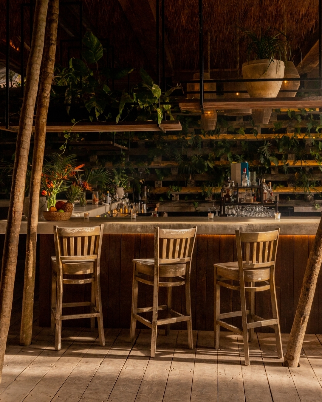 The setting at NÜ is as magical as its culinary offerings. Situated in an open-air space surrounded by tropical jungle, the restaurant provides an intimate and cozy atmosphere that connects diners with nature. The décor, inspired by rustic simplicity and contemporary design, uses natural materials such as wood, stone, and handcrafted textiles that reflect the spirit of Tulum. Soft lighting and the arrangement of tables under a canopy of trees create a relaxed and enchanting ambiance, perfect for enjoying a special evening under the stars.
