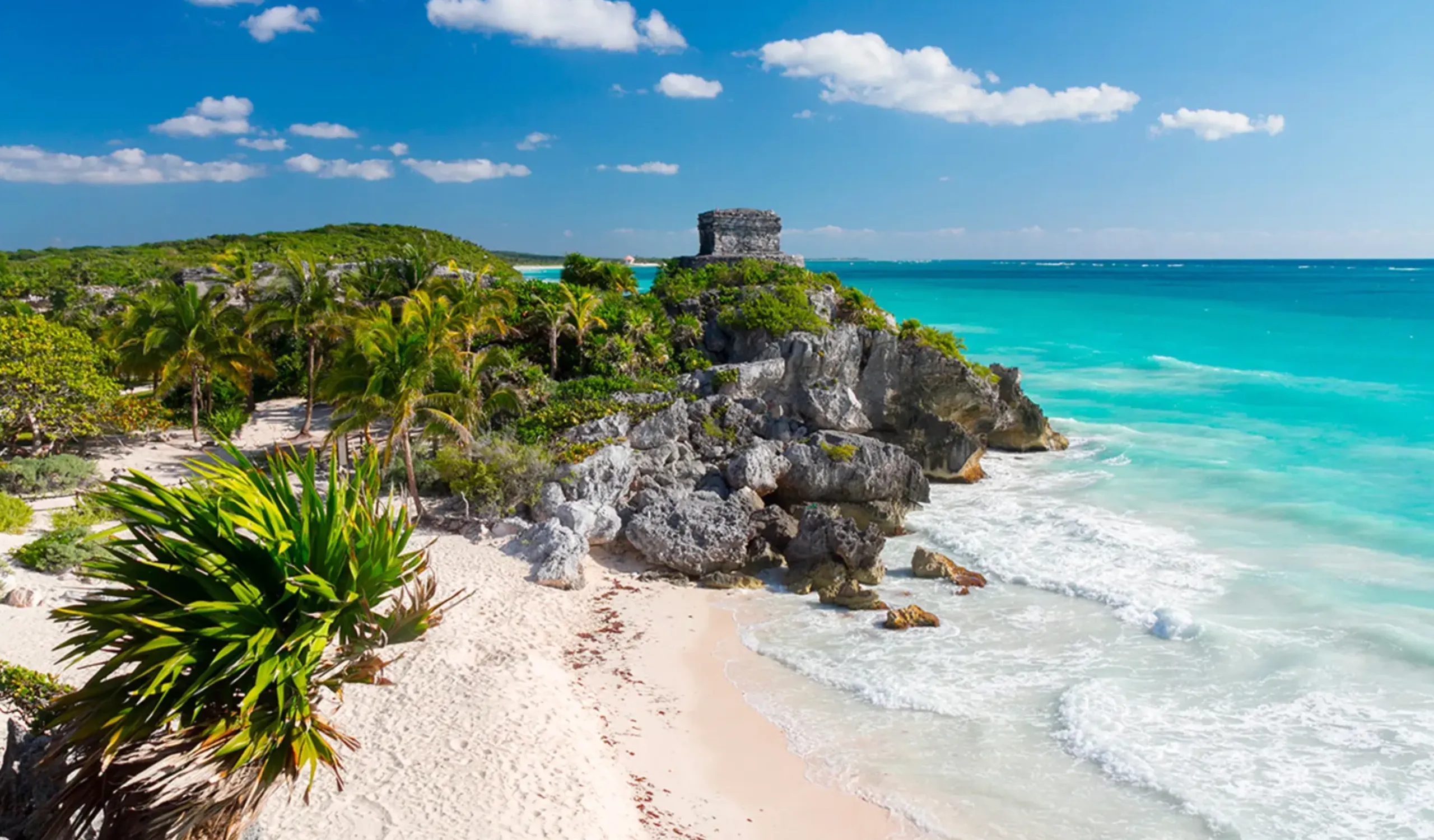 Its white sandy beaches and turquoise waters, along with the stunning Mayan ruins perched on a cliff, offer an experience that deeply connects with the essence of the Mexican Caribbean.