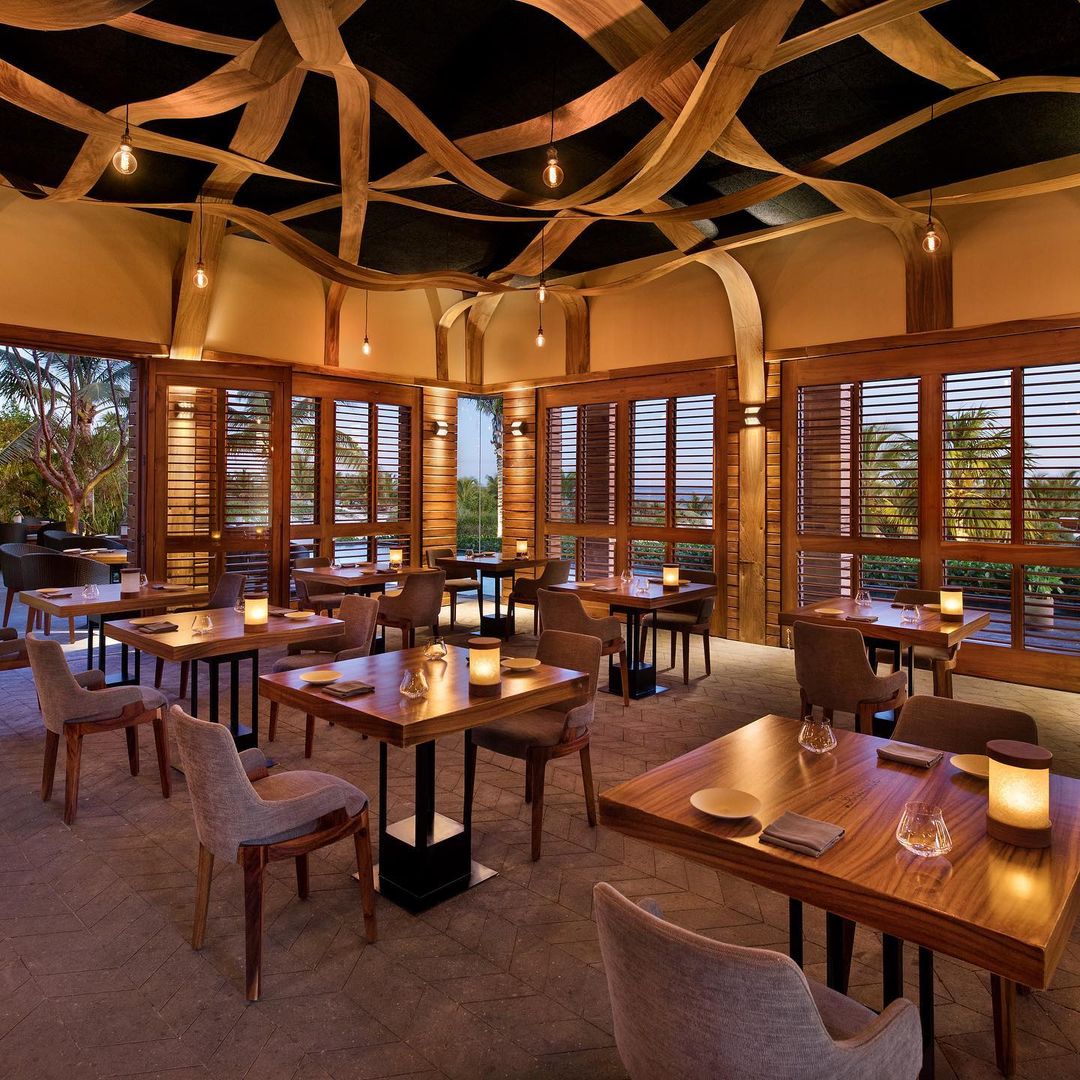 The restaurant’s architecture and décor reflect a harmonious balance between modern luxury and traditional Mayan elements, using natural materials like wood, stone, and clay to create a welcoming and sophisticated atmosphere.