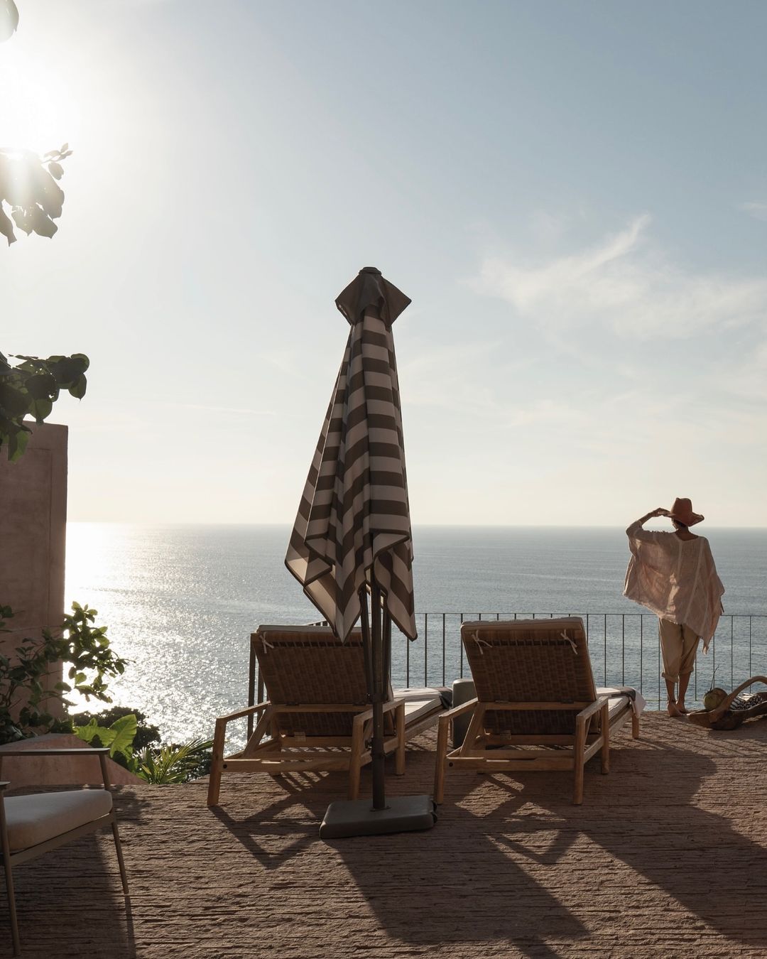 Architectural details include high ceilings, wide arches, and open terraces that allow for a seamless transition between indoor and outdoor spaces, inviting guests to enjoy the sea breeze and panoramic views. The rooms, featuring large windows and private terraces, are designed to maximize natural light and views, creating an atmosphere of calm and relaxation.
