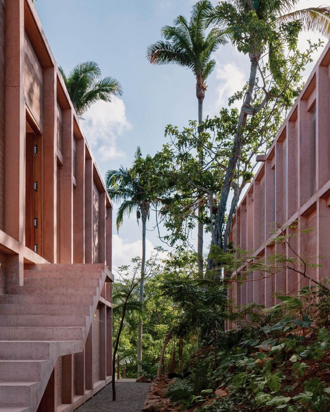 Rosa Morada, nestled in the stunning Riviera Nayarit, is a boutique hotel that stands out not only for its serenity and comfort but also for its unique architecture that reflects the vibrant and colorful character of Mexico. The hotel, with its distinctive pink color that glows under the tropical sun, is a true visual icon that perfectly harmonizes with the lush greenery and the blue ocean that surrounds it.